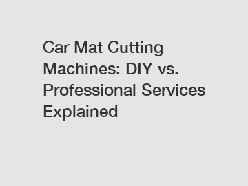 Understanding the Basics of Car Mat Cutting MachinesWhen it comes to customizing car mats, the choice between DIY and professional services can be overwhelming.